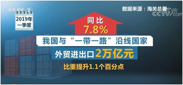 海關(guān)統(tǒng)計(jì)顯示,一季度我國(guó)與“一帶一路”沿線國(guó)家外貿(mào)進(jìn)出口2萬(wàn)億元,同比增長(zhǎng)7.8%,比重提升1.1個(gè)百分點(diǎn)。