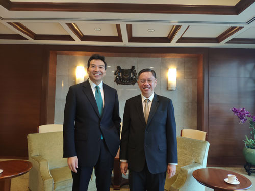 駐新加坡大使洪小勇參加了會見。