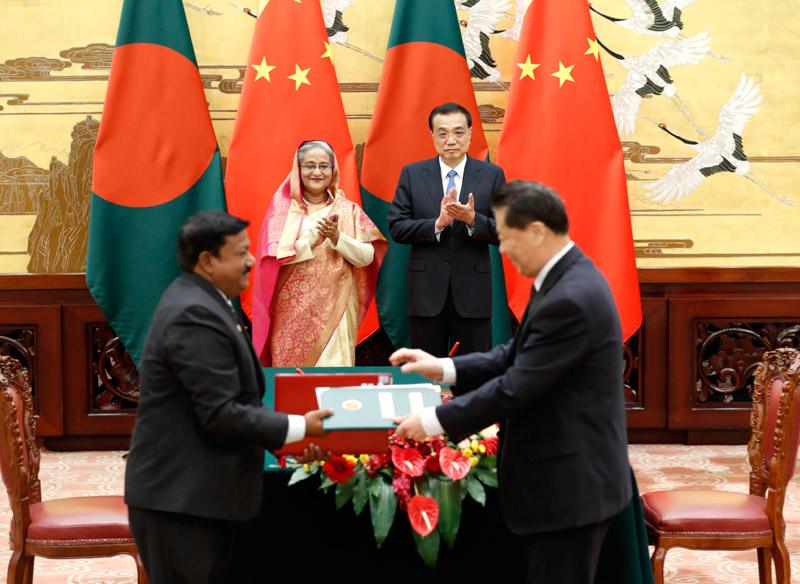 7月4日,孟加拉國(guó)總理謝赫•哈西娜訪問(wèn)中國(guó)期間,在李克強(qiáng)總理和哈西娜總理共同見(jiàn)證下,中國(guó)商務(wù)部部長(zhǎng)鐘山與孟加拉國(guó)財(cái)政部秘書(shū)莫諾瓦•艾哈邁德共同簽署《中華人民共和國(guó)商務(wù)部和孟加拉人民共和國(guó)財(cái)政部關(guān)于建立投資合作工作組的諒解備忘錄》。