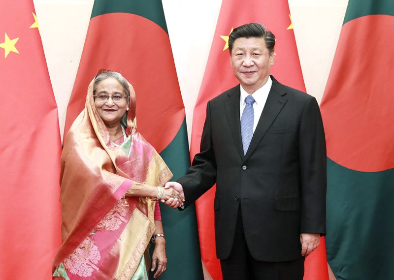習(xí)近平指出,中國(guó)和孟加拉國(guó)是傳統(tǒng)友好鄰邦。我2016年對(duì)貴國(guó)進(jìn)行國(guó)事訪問(wèn)時(shí),將兩國(guó)關(guān)系提升為戰(zhàn)略合作伙伴關(guān)系,推動(dòng)雙邊交流合作步入快速發(fā)展的新階段,為各自國(guó)家經(jīng)濟(jì)社會(huì)發(fā)展注入了新的動(dòng)力,也為兩國(guó)人民帶來(lái)了更多福祉。當(dāng)前,中孟都處在各自發(fā)展的關(guān)鍵階段。鞏固好、發(fā)展好戰(zhàn)略合作伙伴關(guān)系,不僅符合兩國(guó)和兩國(guó)人民共同利益,也有利于亞洲繁榮穩(wěn)定和世界開(kāi)放合作。