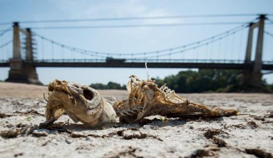 法國西部Montjean-sur-Loire,由于夏季熱浪侵襲,盧瓦爾河水位持續(xù)下降,河床干涸龜裂。