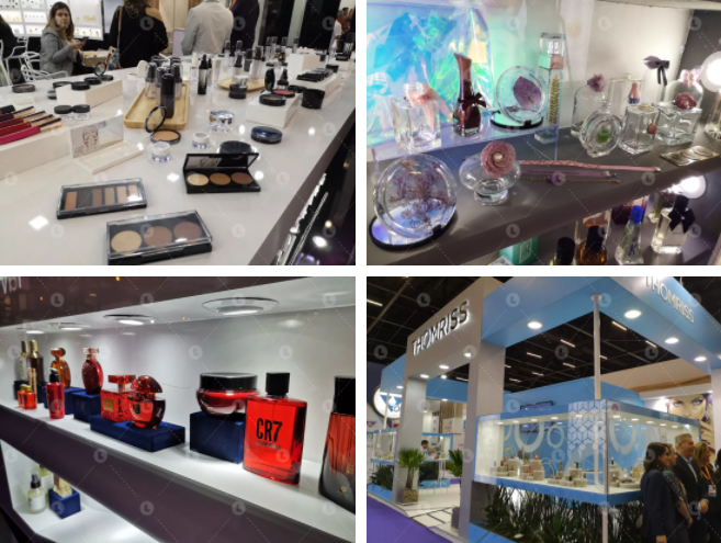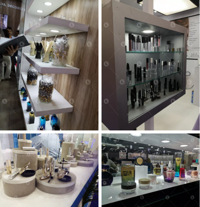 展會(huì)現(xiàn)場(chǎng)的展品以包材為主,包括了彩妝包材、香水、包裝、泵頭和噴霧等。