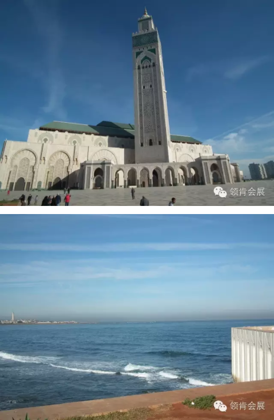 卡薩有全世界第二大清真寺之稱的Hassan II哈桑二世清真寺是這個白色城市的驕傲.據(jù)說是世界上現(xiàn)代化程度最高的清真寺,被譽(yù)為穆斯林世界的一大“寶物”。展會結(jié)束后,導(dǎo)游帶我們參觀這個第二大清真寺,并沿著附近的海邊大道散散步、沐浴陽光,吹著海風(fēng)….