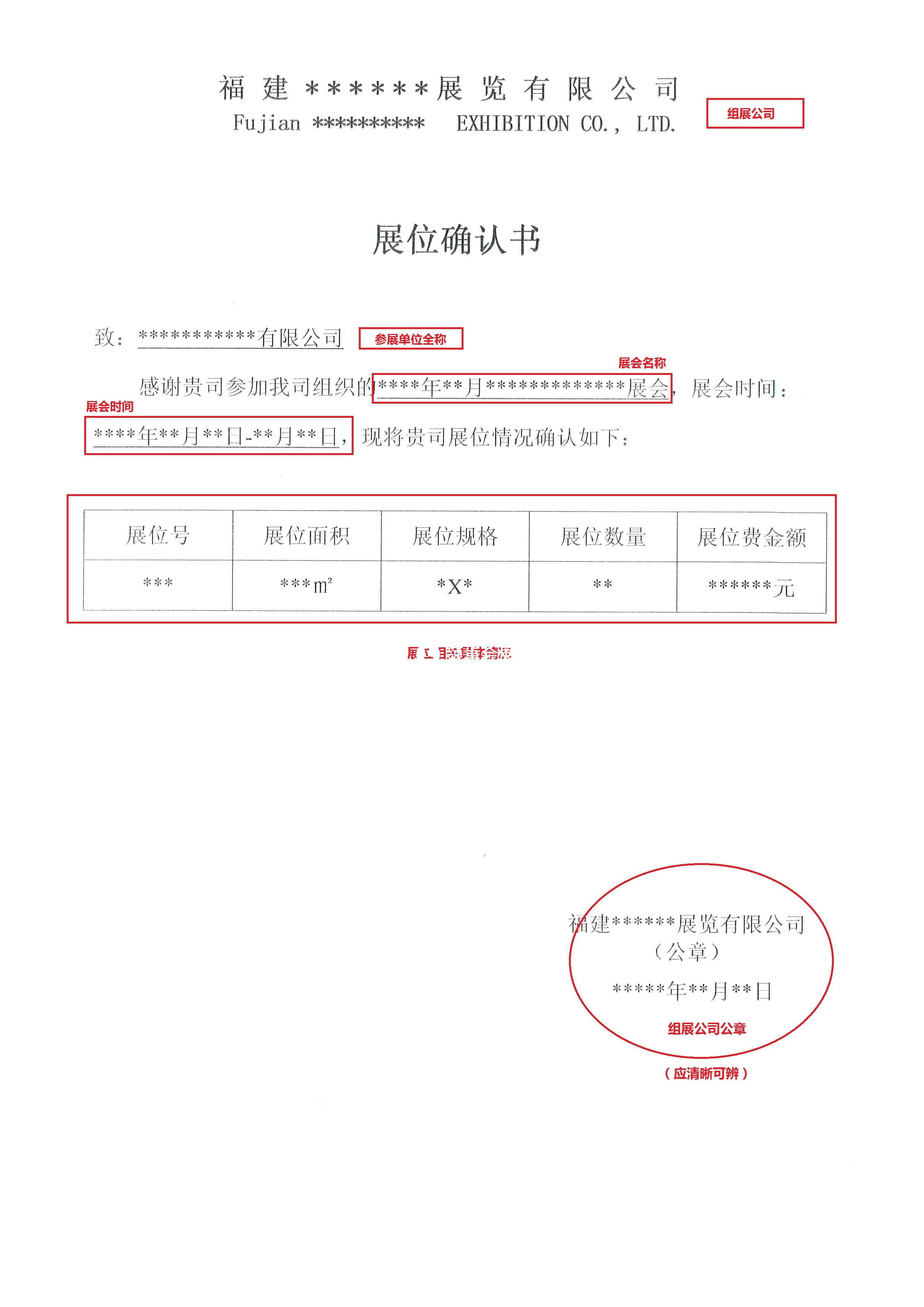 | *展位確認(rèn)書 | 查看樣例 | ||